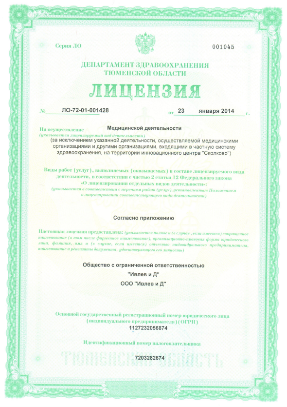 ООО "Ивлев и Д» не является медицинской организацией участвующей в реализации программы государственных гарантий бесплатного оказания гражданам медицинской помощи и территориальной программы государственных гарантий бесплатного оказания гражданам медицинской помощи, в связи с чем услуги оказываются в ООО "Ивлев и Д»" на платной основе.